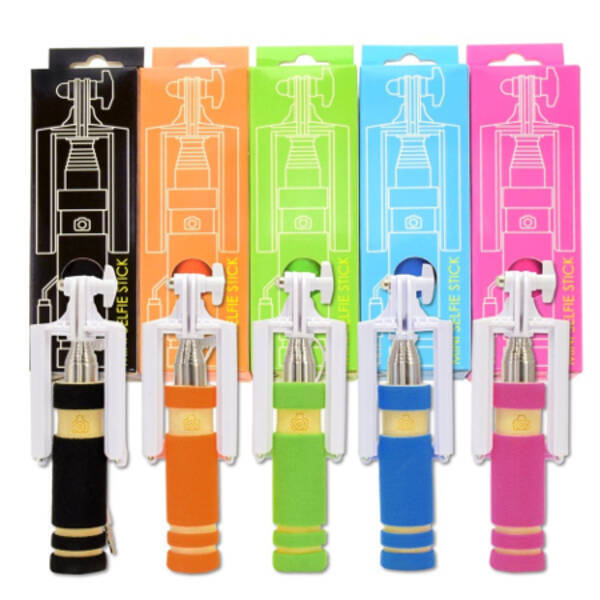 楽天市場 送料無料 シャッター付き自撮り棒 全4色 スマホ 自撮り セルカ棒 セルフ シャッター 青 緑 みどり ピンク 橙 オレンジ かわいい カラフル 旅行 移動 簡単 写メ 自分で みんな 集合 輸入雑貨 アクセサリーの店プラタ